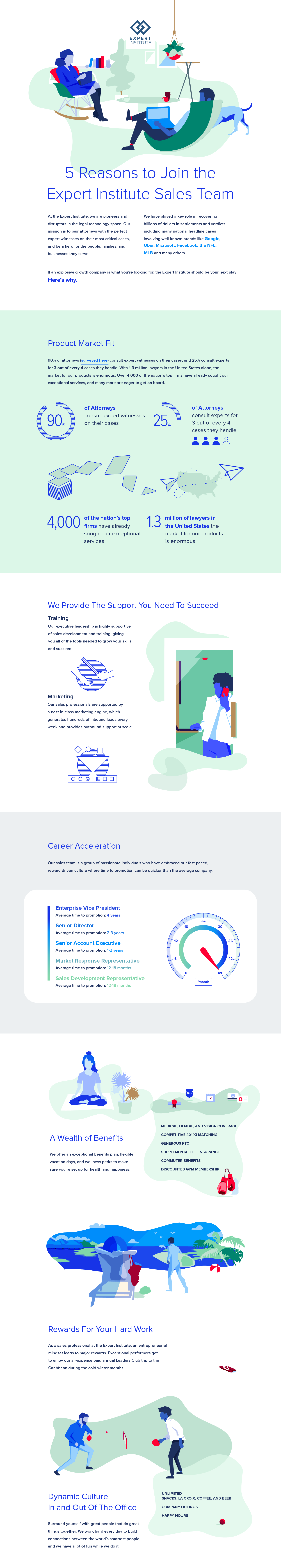 We are a tight-knit group of passionate people who thrive in a fast-paced environment. Our team is always looking for rock stars with a hunger for driving results who want to help us completely own this industry. If you’re looking for the chance to join an explosive company with a high-demand product and unlimited career growth potential, the Expert Institute should be your next play! Here are the top 5 reasons why: