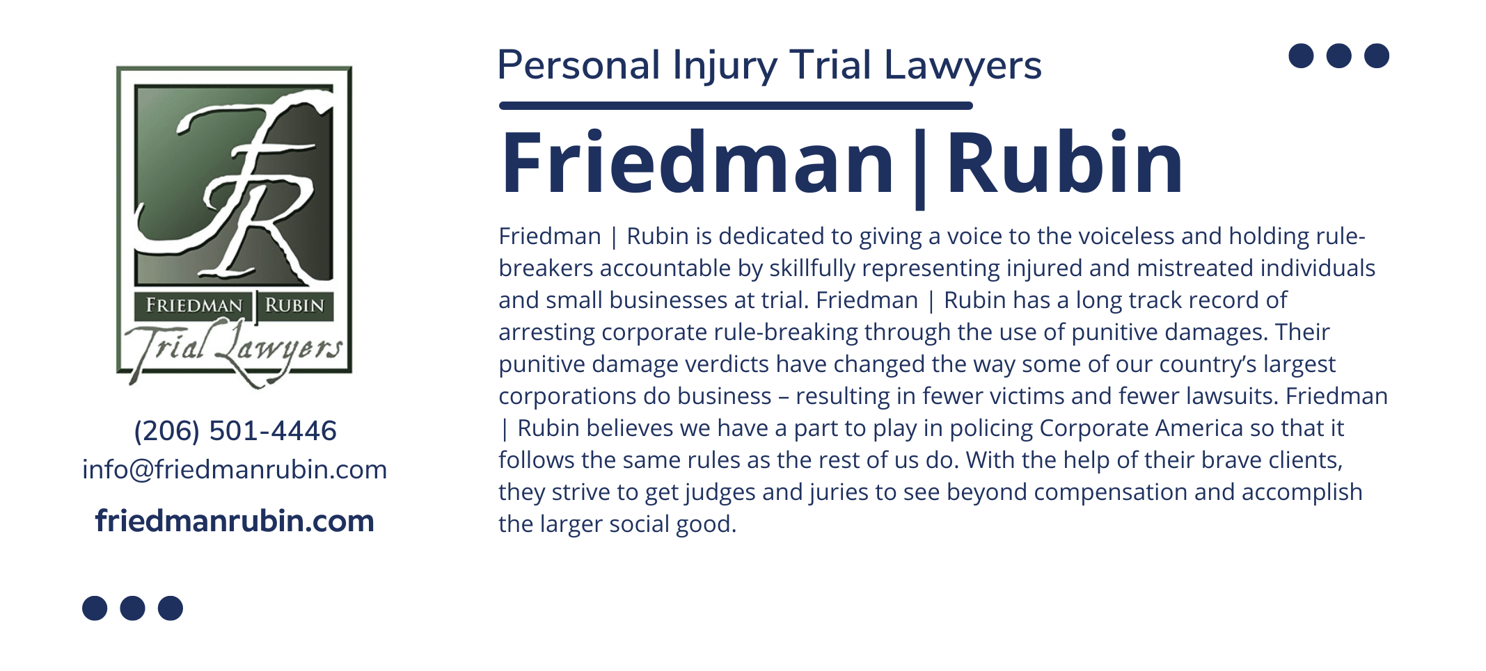 In August 2022, the fifth trial for Bayer related to PCBs commenced in King County Superior County. Richard Friedman and Henry Jones of the Washington-based firm Friedman Rubin represented the plaintiffs, along with Nicholas and Courtney Rowley. Kristen Rodriguez, Mordecai Boone, and Jack Vales of Dentons along with Steve Fogg of the Seattle-based firm Corr Cronin represented the defendants.