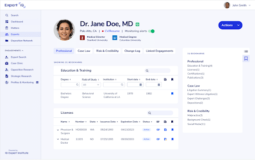 Expert Institute’s Senior Vice President and Head of Product and Technology, John Demler, also took to the LITE stage to introduce some exciting new additions to Expert iQ, including Expert Radar, a new AI-powered expert vetting tool that allows attorneys to conduct due diligence on any expert.