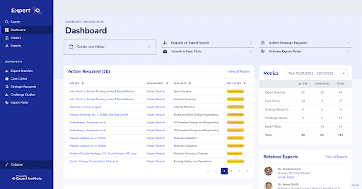 Access all of Expert Institute’s services from the Expert iQ Dashboard.