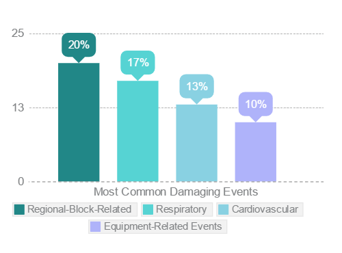 The below chart illustrates the areas of anesthesia responsible for the most claims during the 2000s 1 3 :
