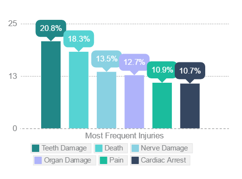 Teeth damage is the most common non-threatening complication in anesthesia (20.8%). Injuries to the teeth are most commonly associated with airway care during general anesthesia. On the other hand, difficulties with a patient’s airway are one of the most feared and serious complications faced by anesthesiologists. They carry a possibility of death or permanent brain damage. Difficult airways were encountered on induction in 67% of cases, during surgery in 15% of cases, on extubation in 12%, and in 5% of cases during recovery. It is important to mention that death and permanent brain damage from difficult intubation at induction of anesthesia has declined since the adoption of ASA practice guidelines.